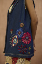 Embroidery: Applique & Beadwork on denim with stitch & Fringe details