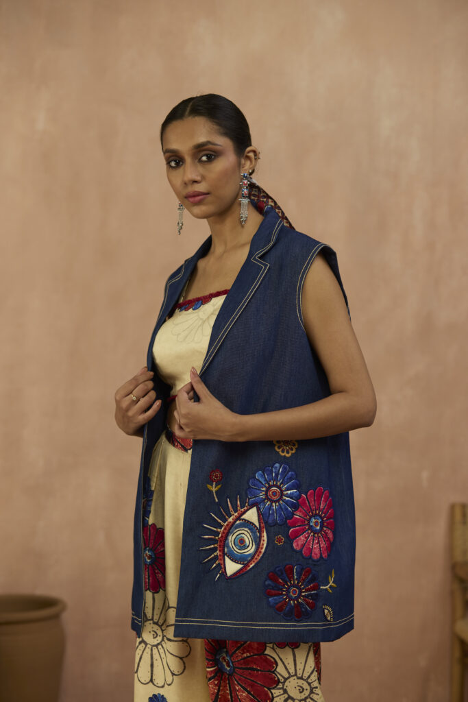 Fabric: Jacket – Denim, Crop top & Pants -Satin,Lining – Santoon