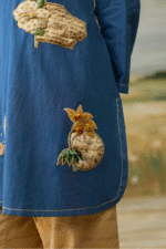 Embroidery: Applique and Beadwork on denim with stitch details